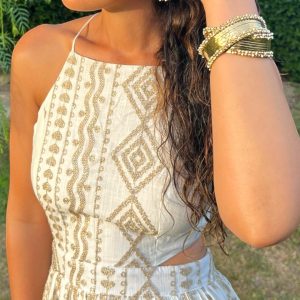 Parfaite pour les soirées d’été, les cocktails ou les escapades au soleil, cette robe incarne l’élégance naturelle et une allure délicate.
