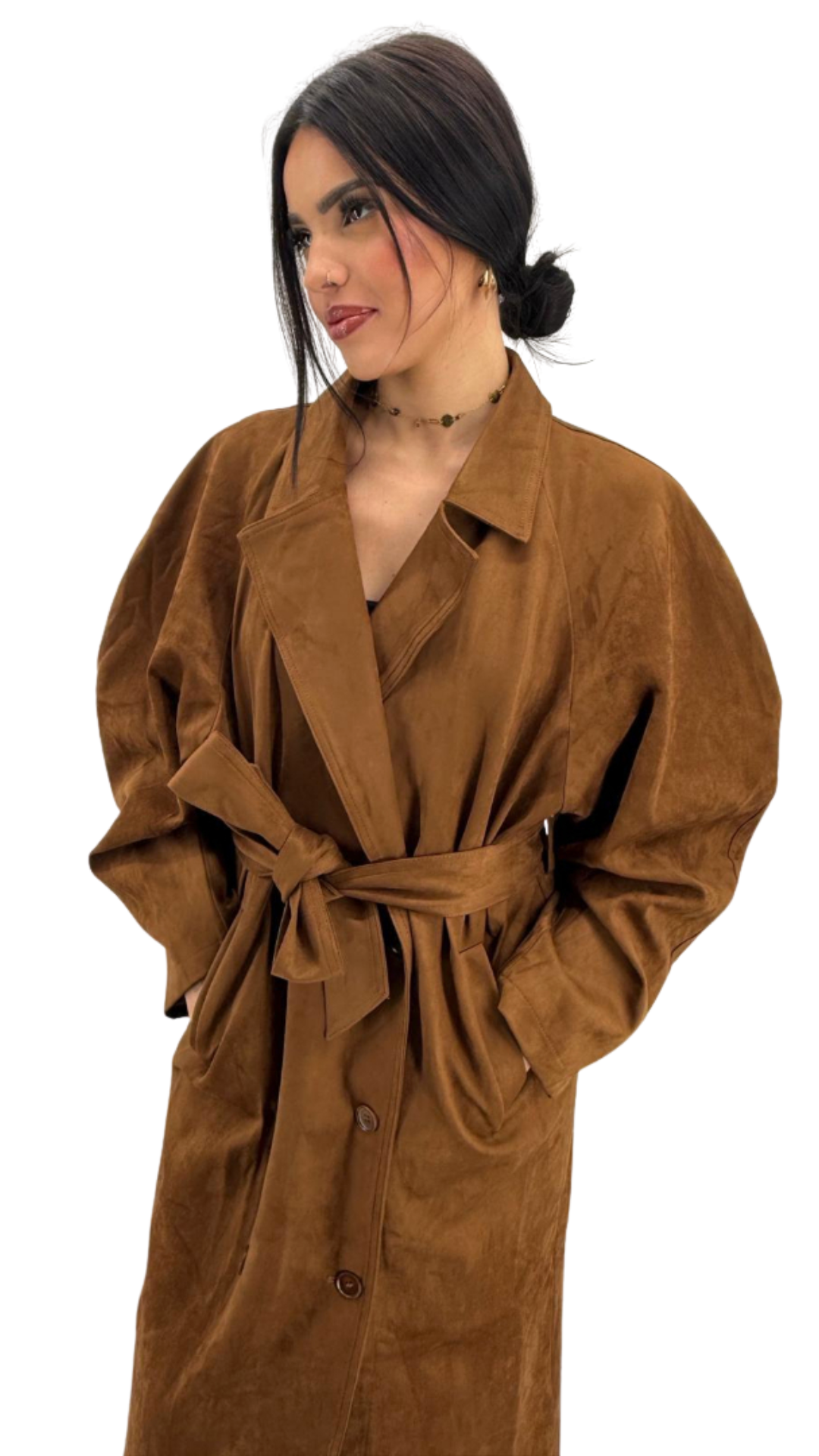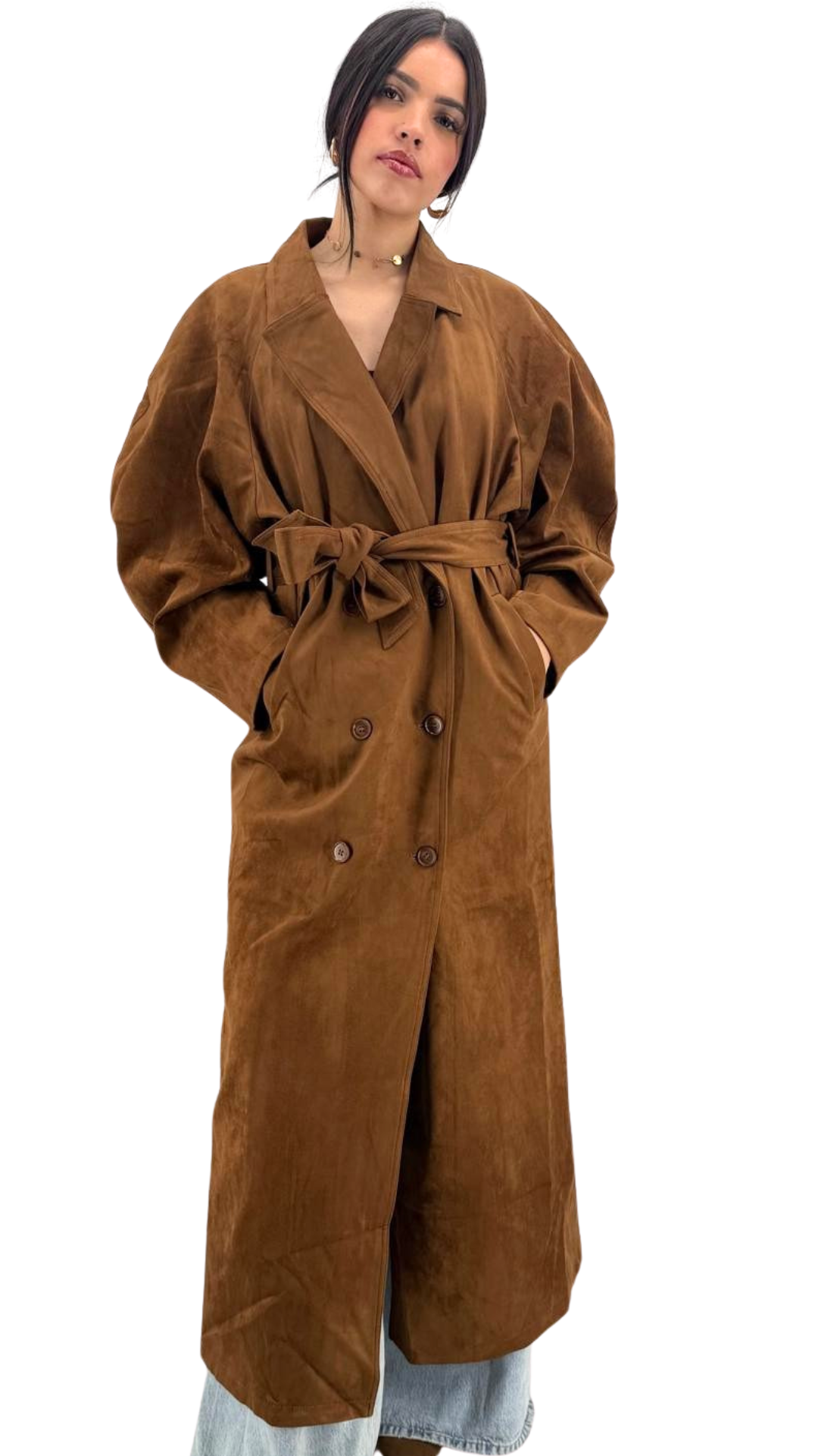 Craquez pour l’élégance automnale avec ce trench oversize en suédine camel, à la fois chic, confortable et flatteur pour toutes les silhouettes. Sa coupe longue jusqu’aux pieds crée une allure élancée et sophistiquée, idéale pour la mi-saison ou l’hiver avec un beau pull.